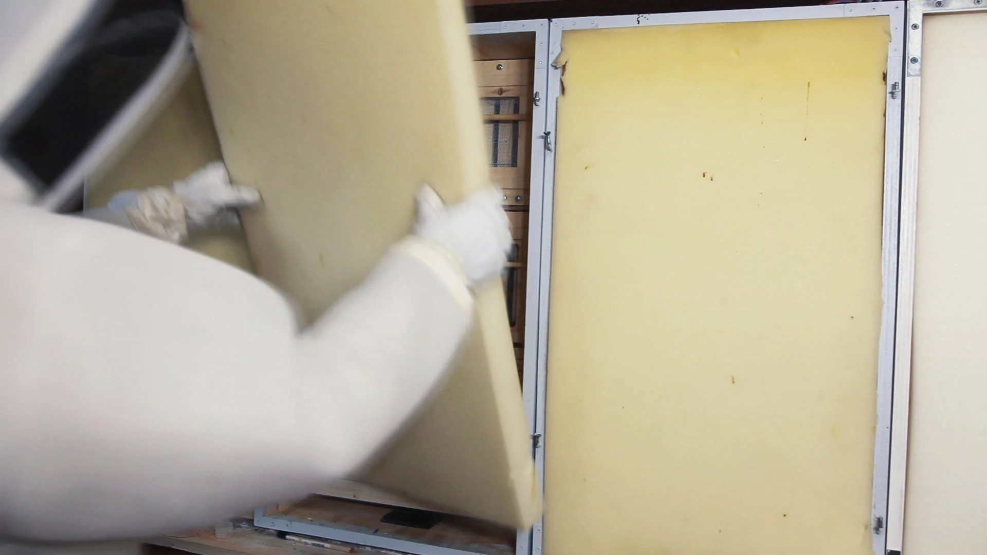 I lift the top hive separator and give them a little smoke to clear the bees.