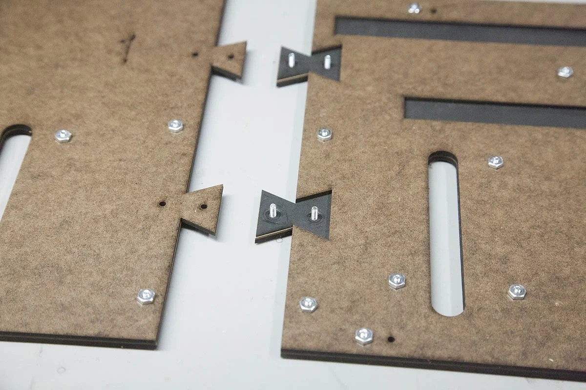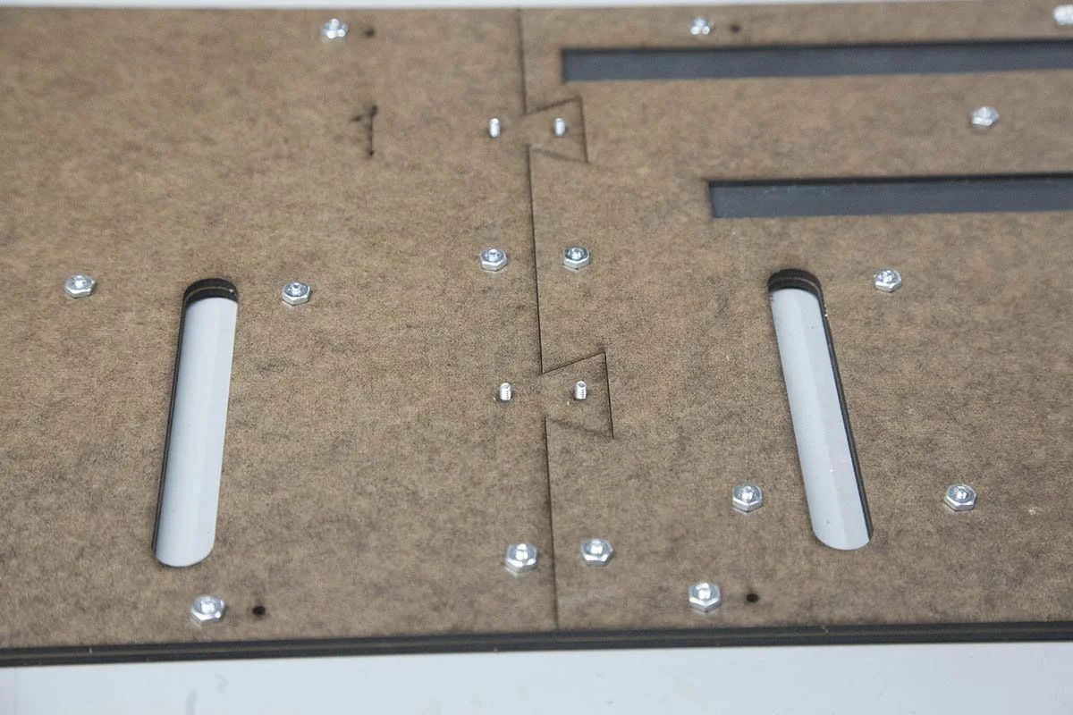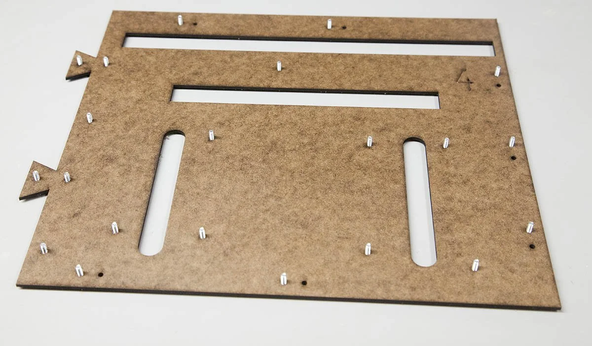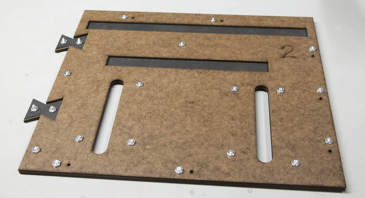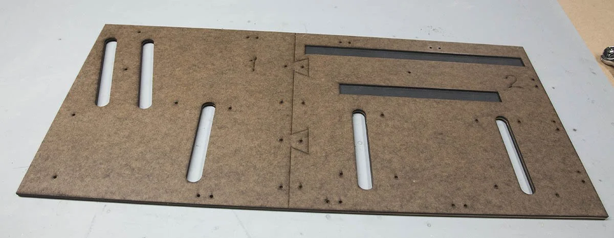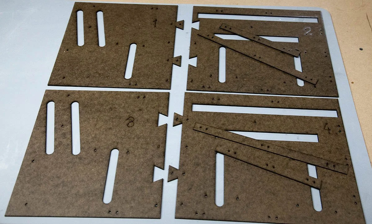 Shown here are the four hardboard components that come in the side panel template kit. They are designed so they can be assembled for milling the right side or left side panels.